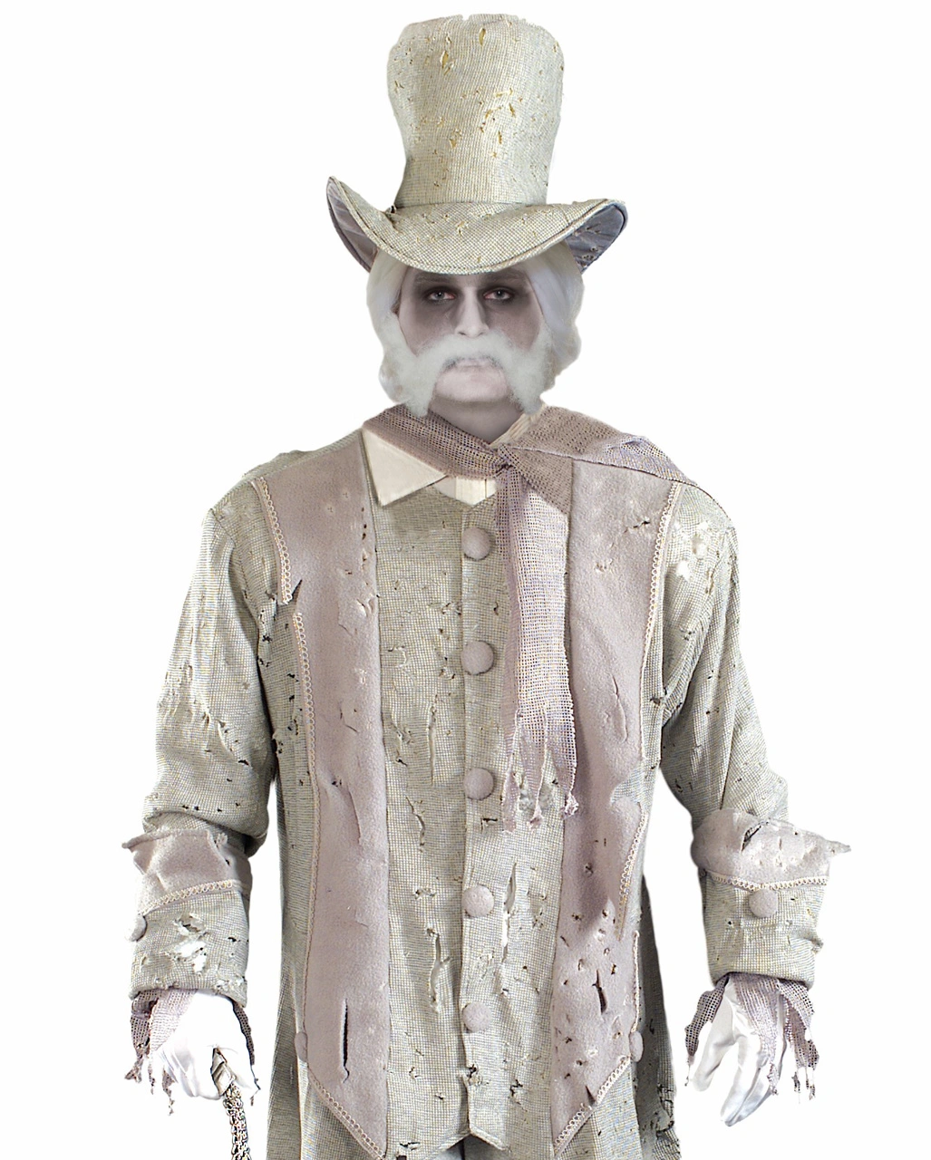 Das Geister Gentleman Kostüm ist eine Halloween Herren Verkleidung mit Stil. Das Geisterkostüm macht aus dir einen ehrwürdigen Herren, vielleicht ein verstorbener Adliger, mit Anzug und Zylinder. Das graue zerschlissene Jacket zeugt davon, dass du schon so manches Jahrzehnt oder gar Jahrhundert durch die Flure spukst. Passend gehört zu dem Geisterhaus Kostüm auch der graue Schal und eben auch der Zylinder. Dein Gesicht kannst du außerdem mit dem Geister Make-up Set 7-teilig perfekt in Szene setzen.